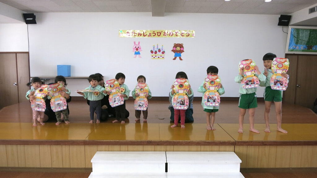 自分のお名前とお歳を言った後、園長先生より素敵な誕生カードをもらいました。
