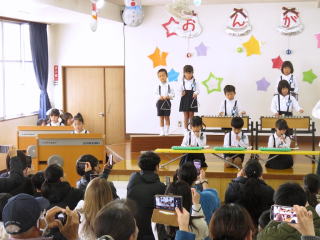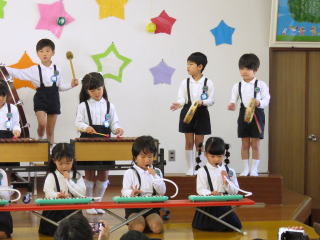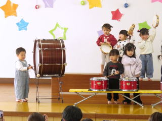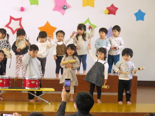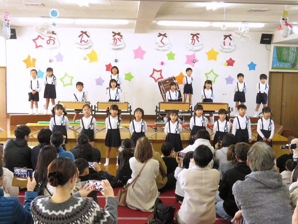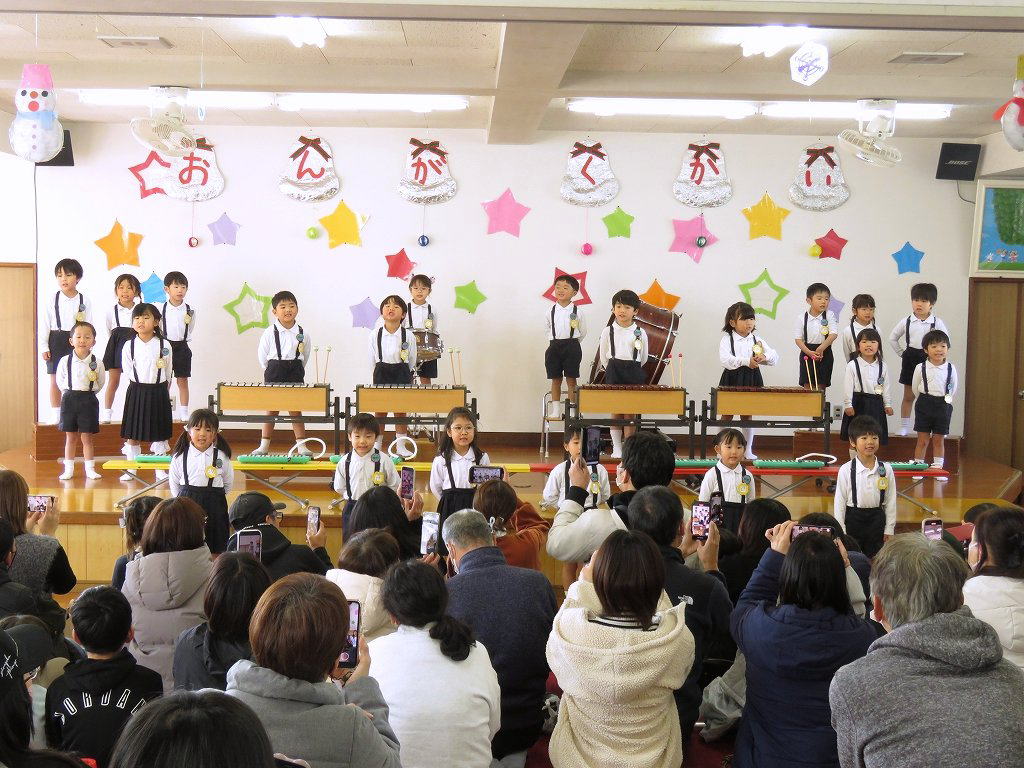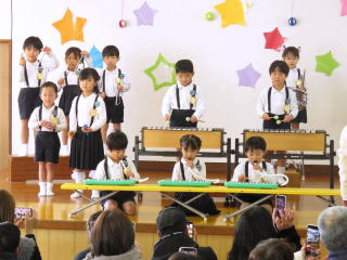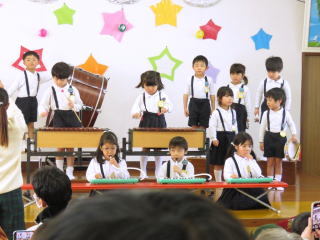 3歳児うさぎ組・4歳児ひまわり組・5歳児ふじ組さんは、しっかりした歌と合奏を聞かせてくれました。