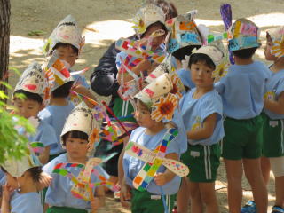4歳児ひまわり組は風車を持ってのかけっこです。