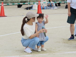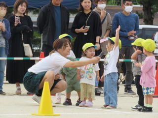 1・2歳児は走る前に名前を呼ばれます。みんな大きな声でお返事ができました。
