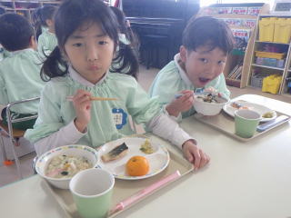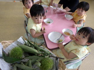 我が園では季節に季節の物を食べる大切さを感じて欲しいと思って提供しています。