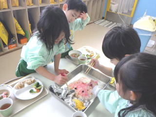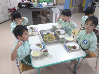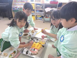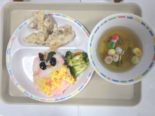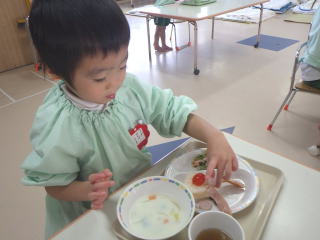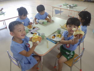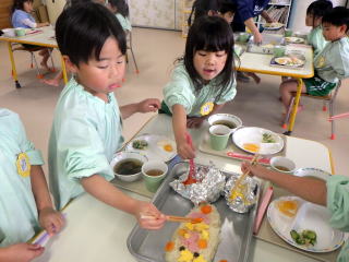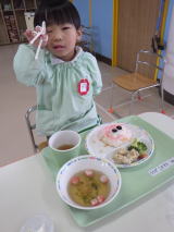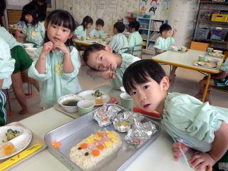 スペシャルランチの定番中の定番で、今や全国の保育園で出されるメニューとなっておるようです。平成21年に我が園で初めて出したメニューでしたが、またたくまに県内の園で出されるようになりました。HPで見て我が園でもやってみましたというお言葉を全国から頂いたのを覚えています。