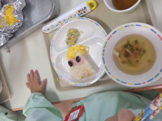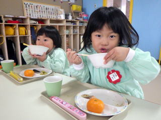 2歳児つくし組さんではいつもと違うおかゆだったので大喜びでいっぱい食べました。