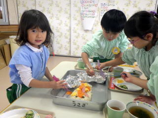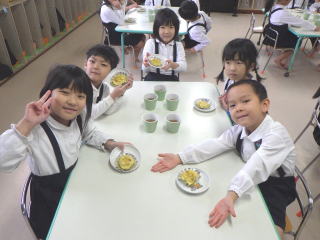 5歳児ふじ組さんに「スゥィートポテト」を作ってもらいました。