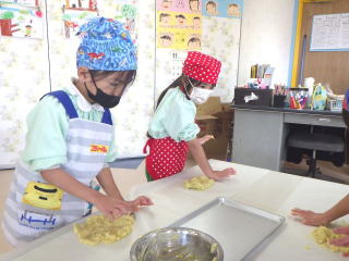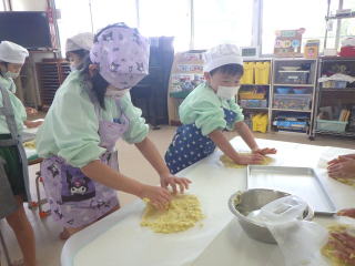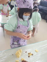 小さい手の割には大きな形になり、全園児のおやつになるので数や大きさを調整しながらの活動でした。