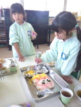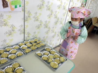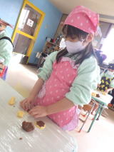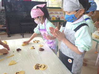 5歳児ふじ組、4歳児ひまわり組さんが音楽会のごほうびになる「クッキー作り」をしました。