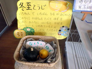 今日は冬至ですので、何種類かのかぼちゃが展示されました。